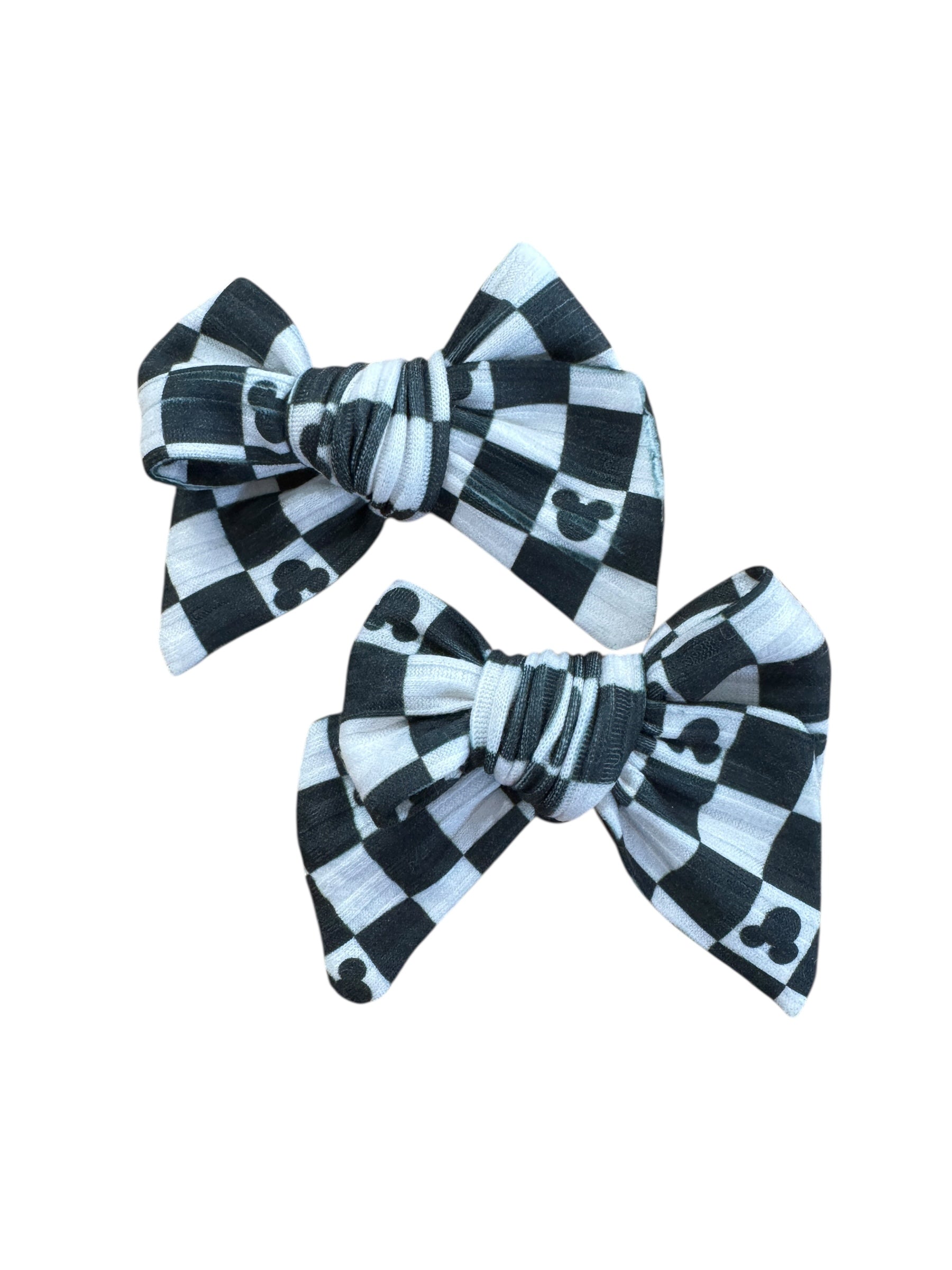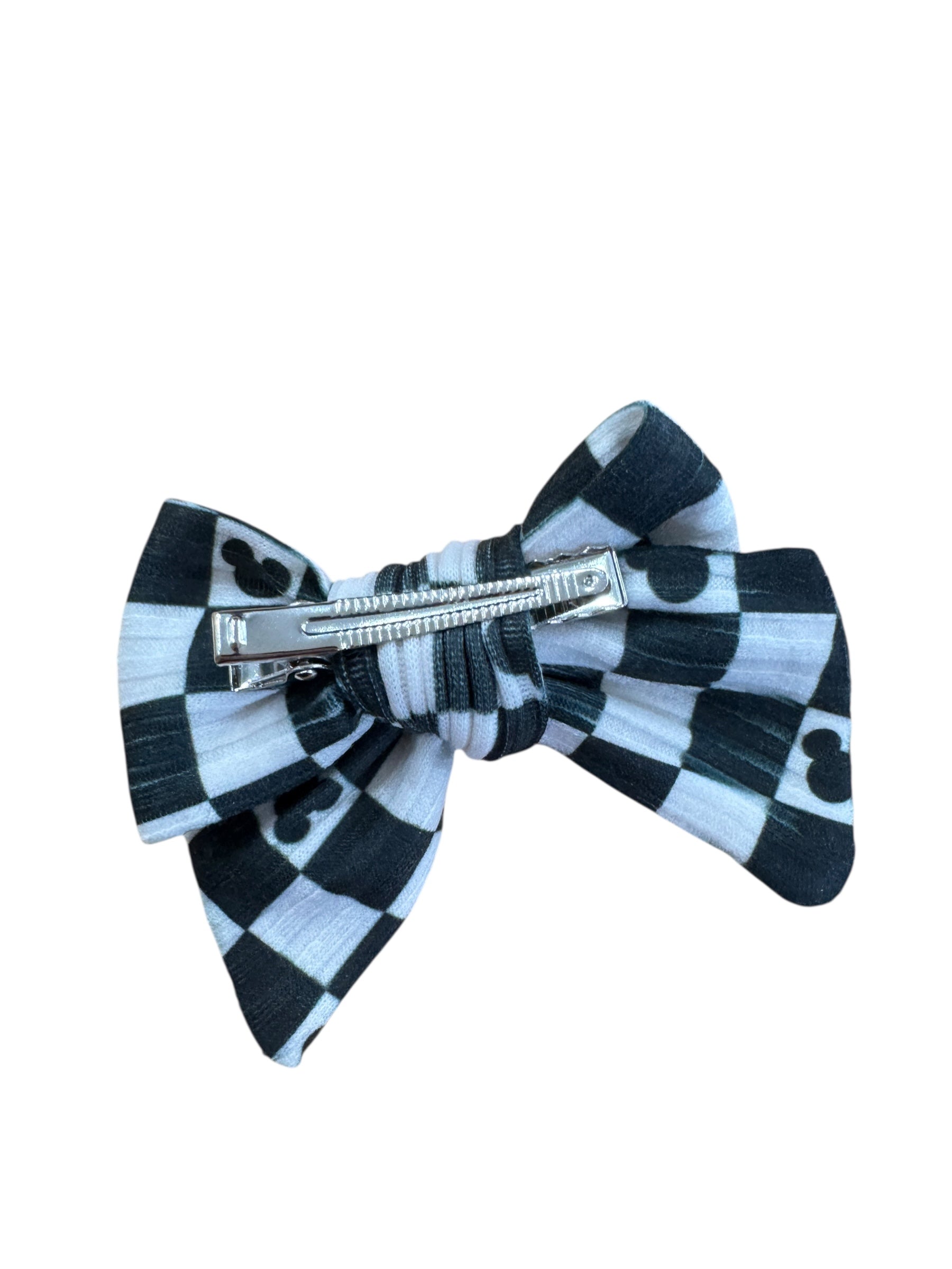 Black Checkered Mouse Hair Bow – Add adorable, playful style with our cute black checkered mouse hair bow featuring a charming black and white checkered pattern. Available in 2 sizes and multiple attachment options, this hair bow is perfect for a trip to the magical park, parties, school celebrations, and everyday festive wear.