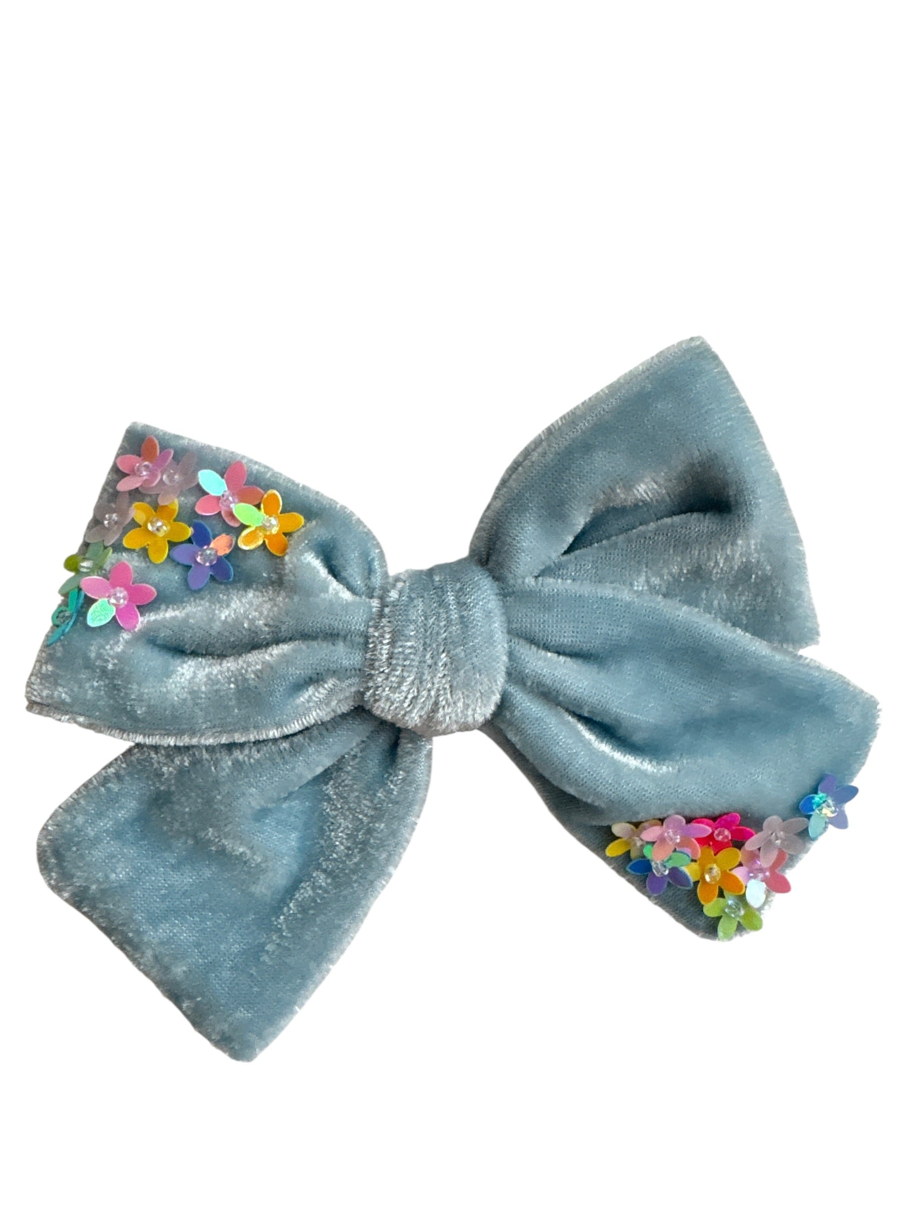 Velvet Hair Bows with Sequin Flowers - Girls Alligator Clip Bows