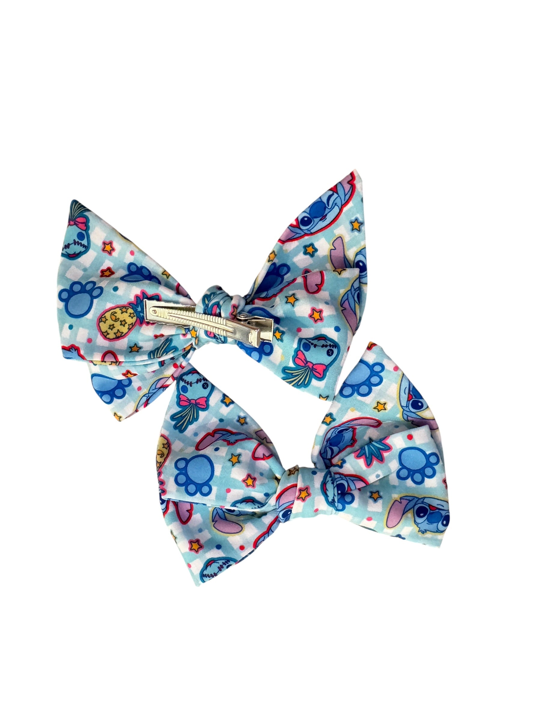 These enchanting hair bows combine the beloved blue alien character with tropical Hawaiian vibes, creating the perfect accessory for little fans of the mischievous space experiment. The vibrant blue fabric features authentic Hawaiian prints that capture the spirit of island adventures. Whether you're planning a trip to the theme parks, celebrating a luau party, heading to a tropical vacation, or just want to add some character fun to daily style, these Stitch bows are a must-have!
