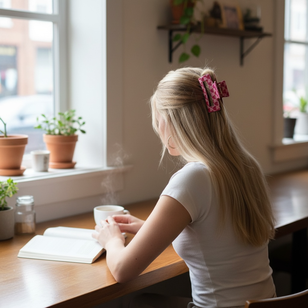 Fall in love with these charming mini heart claw clips! Perfect for adding a sweet touch to any hairstyle, these rectangle air clips are ideal for creating half-up styles, or adding playful accents to messy buns.