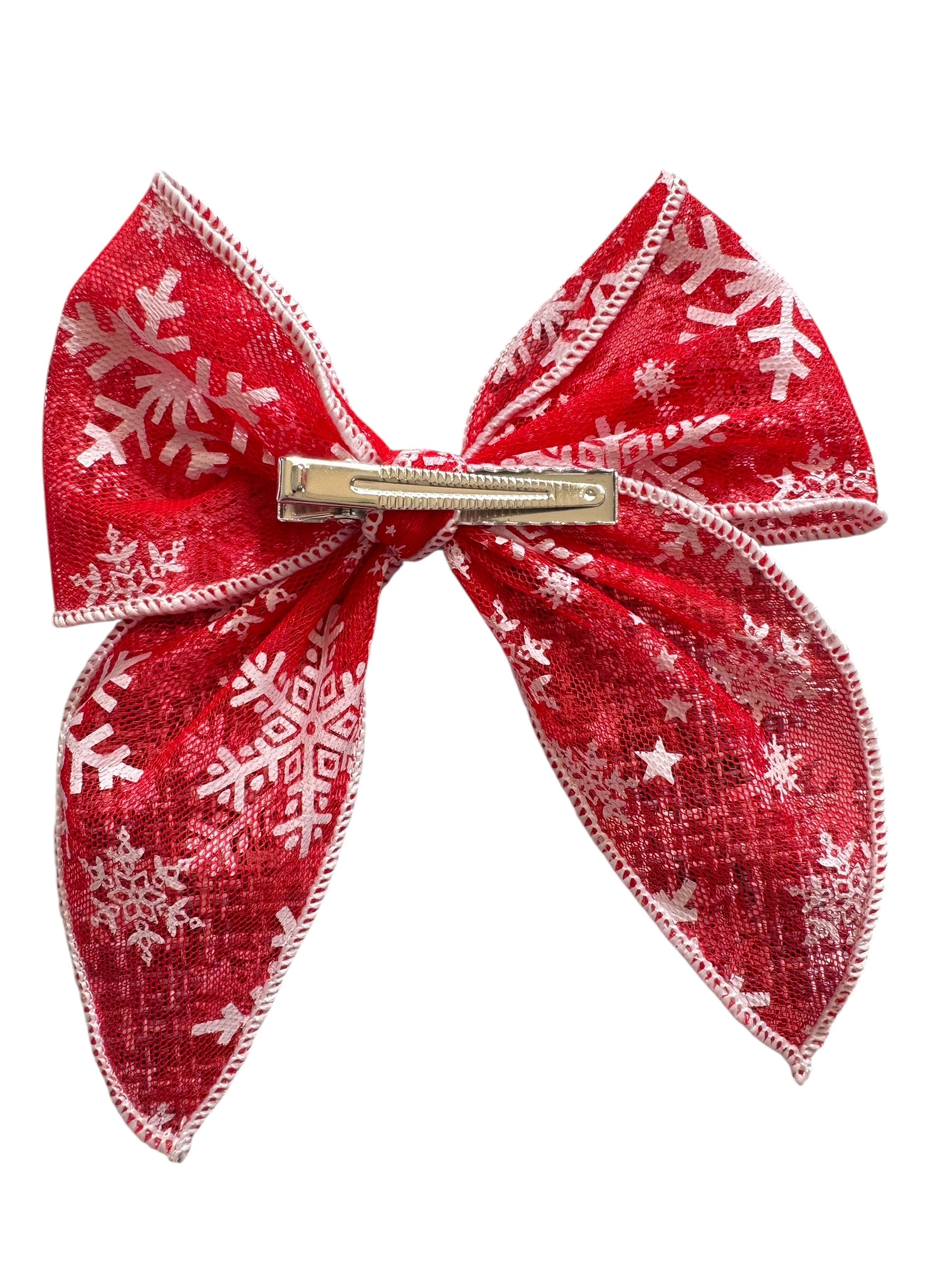 These snowflake bows bring winter magic to any outfit. The red and silver color palette offers a sophisticated twist on traditional Christmas accessories, while the snowflake element adds playful sparkle that kids love. Perfect for holiday parties, Santa visits, family photos, or everyday festive fun.