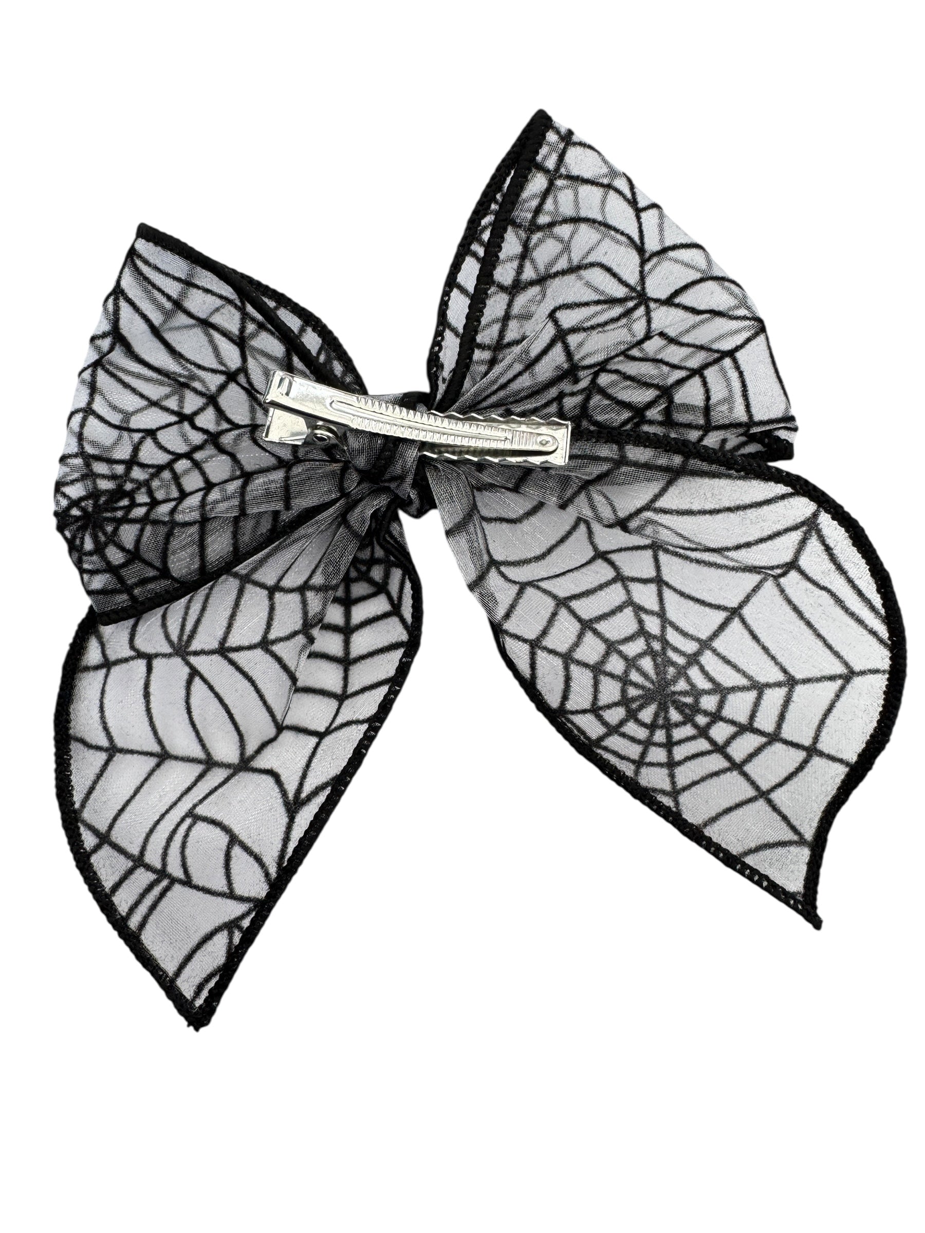 Soft tulle hair bow with black spider web accents