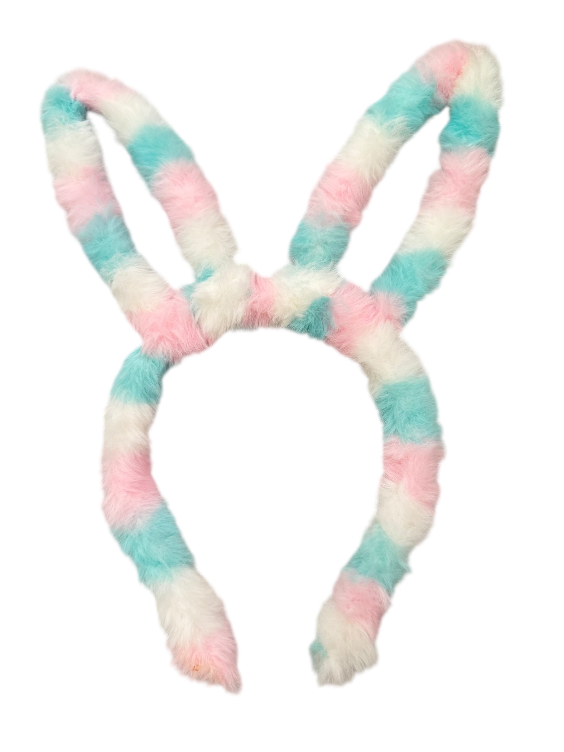 Easter Bunny Ear Headband - Fuzzy Striped Headband for Girls & Kids