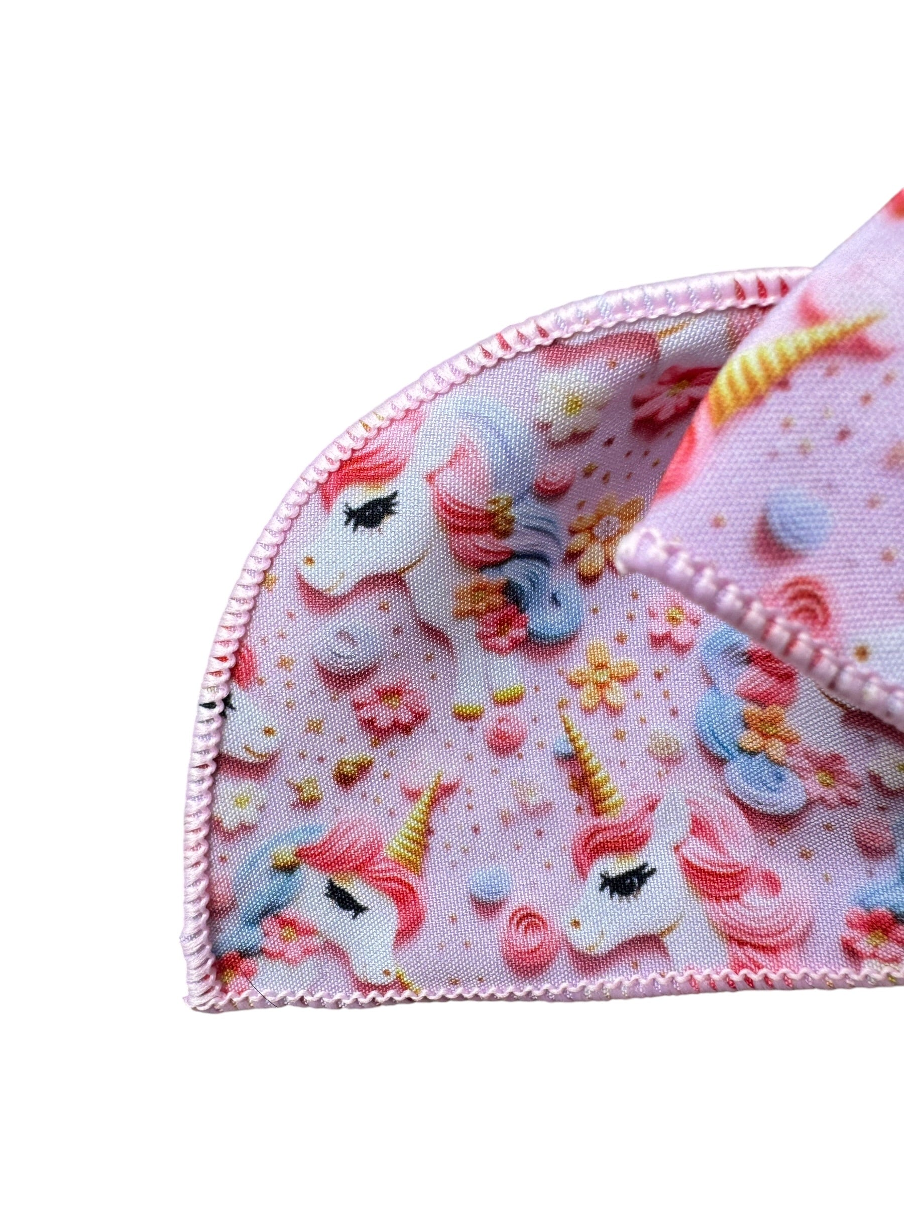 - Whimsical unicorn & rainbow design in pink, purple & green